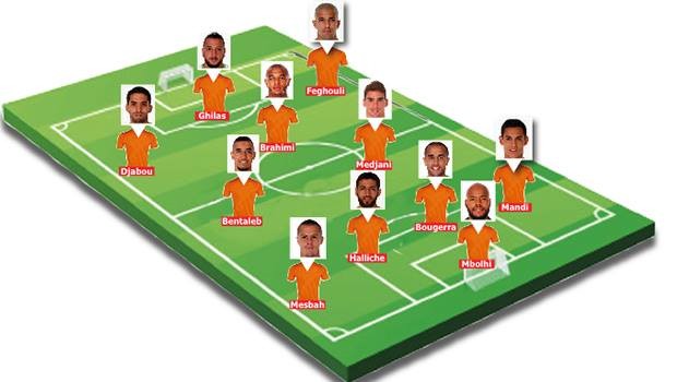 Sofiane Feghouli aura un rôle important cette fois-ci. Il sera en effet plus libre. L’attaquant du FC Valence jouera derrière l’avant-centre et entre les deux ailiers Djabou et Brahimi. Ce sera le véritable meneur de jeu des Verts. Nabil Ghilas sera lui aussi titularisé en pointe de l’attaque. Il sera en effet seul en pointe, mais aura le soutien de trois joueurs importants, à savoir Feghouli, Brahimi et Djabou.